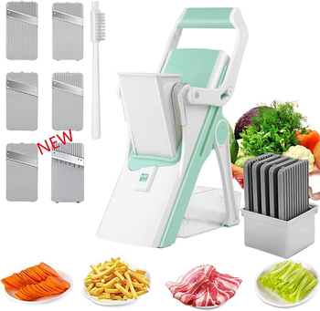 Безопасная многофункциональная овощерезка, регулируемый пищевой резак для картофеля фри, с контейнером-6 лезвий